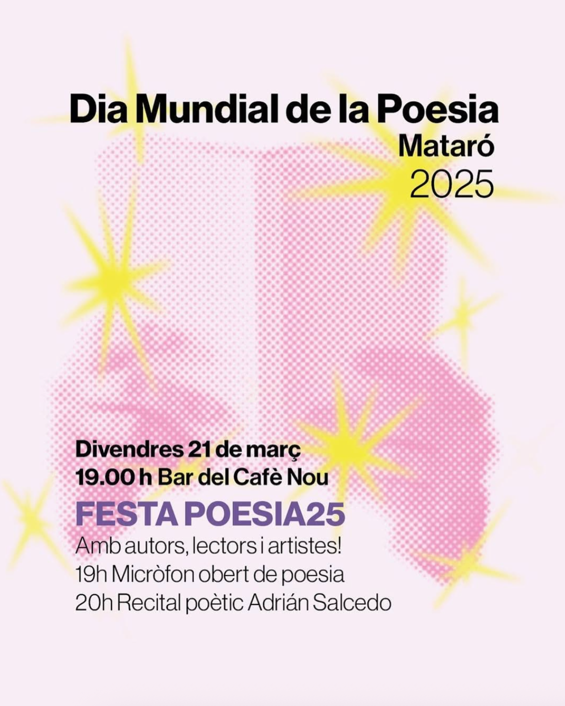 Cap de cartell per al Dia Internacional de la Poesia a Mataró l'any 2025. Una vetllada en la qual vaig fer servir el Looper RC-505 de BOSS per a produir sons en directe amb què acompanyar poemes i manifestos.